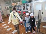 6つの班に分かれ、2年生が1年生を連れて校内を案内しました。