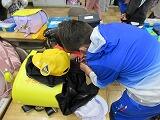 登校してから1年生の教室に行き、朝の用意のお手伝いをしています。
