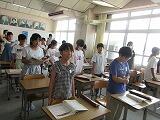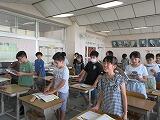暑さが厳しいため、体育館ではなく、各教室のオンラインでの実施となりました。初日も変わらず校長先生の話を真剣に聞く態度に、「また頑張っていこう。」という気持ちが伝わってきました。また、学習指導主任からの話も聞いて「けじめをつけていこう。」と気を引き締めていました。