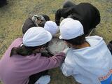 土鍋に付いた塩をみんなで一生懸命こそげ落とします。