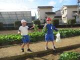 1年生では、国語の時間に、「おおきなかぶ」を学習したので、畑にかぶの種を蒔き、登場人物のおじいさんのように心を込めて水やりをしてきました。水やりのときに自分で観察し、大きくなったものから収穫しています。10日の授業参観では、全員で「くじらぐも」の音読をしますので、楽しみにしていてください。
