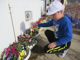 また、先月行った花の寄せ植えは、土が乾かないように水やりをしています。授業参観の日にお持ち帰りいただき、ご家庭でお楽しみください。