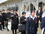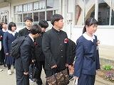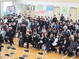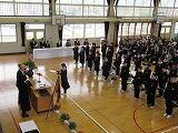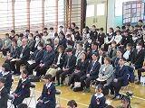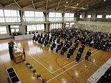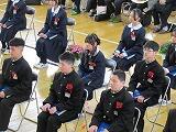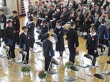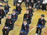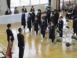 体育館で待つ在校生のもと、新しい制服を身にまとった卒業生全員が入場しました。担任の呼名で一人一人大きな声で堂々と返事をし、立派な態度で卒業証書を受け取っていました。