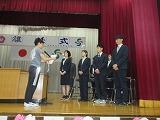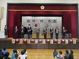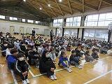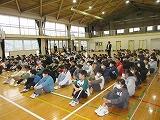 校長先生から転退出なさる先生方のご紹介があり、子どもたちは、真剣に話を聞いていました。代表児童の作文発表、花束贈呈の後、最後のお話となりました。別れを惜しむ子どもたちの眼差しが印象的でした。